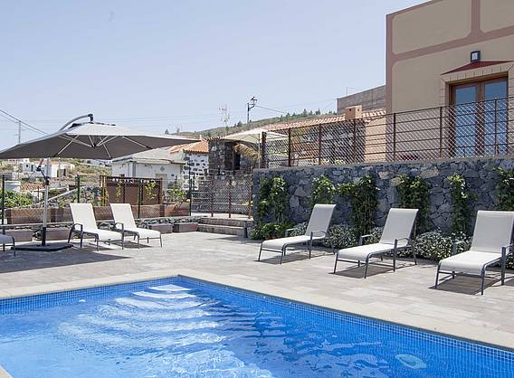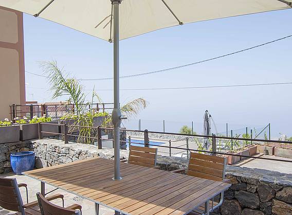 Esta casa rural esta formada por un precioso salón con terraza y preciosas vistas a la piscina y a las islas de la Gomera, El Hierro y la Palma.