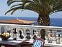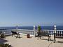 Terraza de 400m2 con solarium y vistas al mar con hamacas y sombrillas.