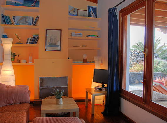 * La casa tiene aproximadamente 100 m2 construidos. Se compone de 2 dormitorios con dos camas individuales (juntas), cocina, sala de estar y un cuarto de baño con ducha. * La cocina cuenta con vitrocerámica, horno, congelador combinación-nevera, lavavajillas, cafetera y lavadora. * El salón se encuentra un cómodo sofá junto a un pequeño televisor LCD con receptor de satélite, reproductor de DVD y una radio CD. * La terraza con parte cubierta tiene vistas sobre el jardín y hacia el mar y desde aquí se puede disfrutar de románticas puestas de sol. * La casa cuenta con barbacoa junto al patio