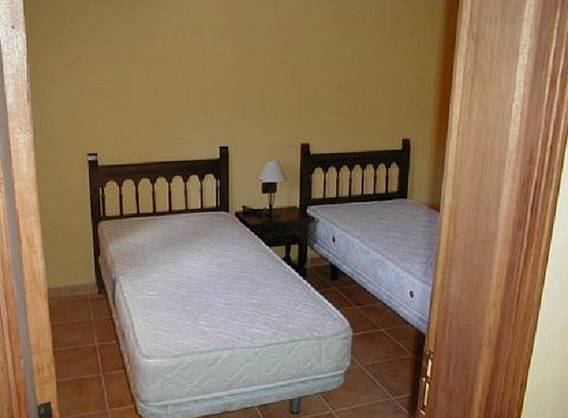 * 1 dormitorio con cama de matrimonio y otro con 2 camas individuales. + sofa-cama * Calefacción eléctrica portátil, lavadora y agua caliente, cocina con cocina eléctrica, frigorifico, tostadora, cafetera eléctrica, microondas y menaje de; baño con ducha, lavabo e inodoro; dormitorio con camas, armario y mesa de escritorio; salón con sofá cama, TV y mobiliario complementario * Terraza, jardín y barbacoa compartida * No preparada para personas con minusvalía física