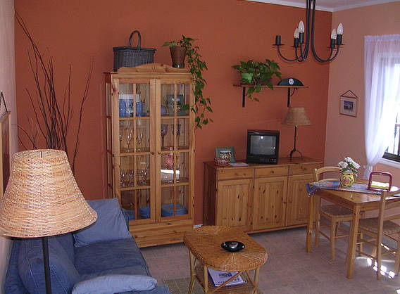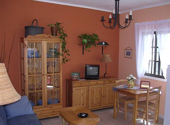 * 1 dormitorio con 1 cama de matrimonio de 150 x 200 + un sofa cama de 135 x 190 para niños. * Salón-comedor, cocina, baño, terraza, fundas nórdicas, edredones, toallas, menaje de cocina, nevera, microondas, calefacción, tostadora, TV y servicio de lavandería para estancias superiores a una semana (con cambio de sábanas y toallas incluido). * Mobiliario de estilo rústico