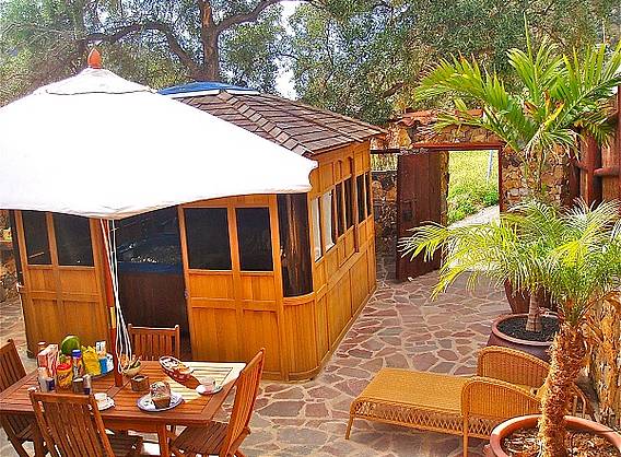 * 1 Dormitorio con cama doble, con aseo con WC y lavabo en el dormitorio, tv. y cuna disponible. * Jacuzzi con Ozono cubierto en cenador de madera. * Cocina completamente equipada con lavavajillas, lavadora, secadora, y microondas-horno * 1 baño completo con ducha * Agua caliente por energía solar. * TV pantalla plana-Satélite, Equipo HIFI-CD, Hilo Musical, Aire Acondicionado-Calefacción y estufa de leña en salón. * Caja de Seguridad. * Barbacoa y mobiliario de terraza. * Pequeño equipo informático con conexión internet.