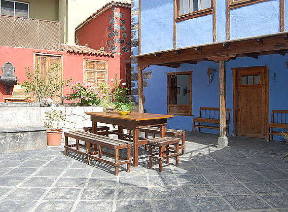 Esta amplia casa rural canaria, cuya construcción original data del año 1800, se ha convertido hoy en día, en un espacio que conserva el romántico carácter arquitectónico de su época, con sus suelos y techos de madera, antiguos muebles y el típico patio interior.