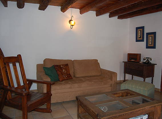 La casa rural tiene maravillosos suelos y techos de madera y un ambiente muy acogedor.