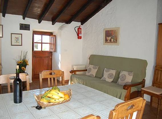 * La Casa Rural cuenta con 2 dormitorios dobles, uno con cama de matrimonio y otro con 2 camas individuales. Hay posibilidades de sofá-cama en el salón