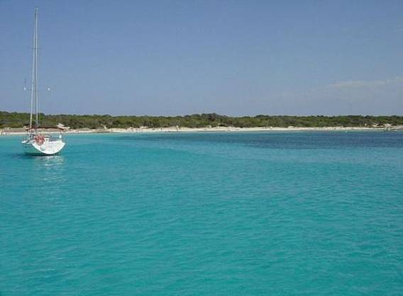 La playa de arena blanca y aguas cristalinas de Sa Rápita-Es Trenc comienza en el puerto deportivo de la tranquila localidad de Sa Rápita.