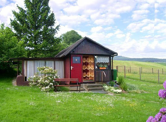 Nuestra cabaña (bungalow) en Cunnersdorf en Koenigstein, en el municipio de Gohrisch, margen izquierda en el área de conservación de la Suiza sajona.