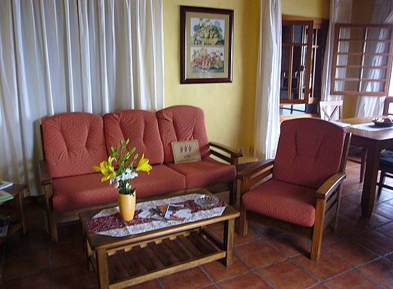 * Dos dormitorios con dos camas individuales cada uno, sofa-cama y cuna. * Roperos, cómodas y mesas de noche; baño completo con bañera; salón-comedor y cocina, TV con antena parabólica. Menaje de hogar y lencería completos, lavadora, estufa, televisión, equipo de música, microondas, vitrocerámica, tetera eléctrica, plancha, secador de pelo etc... * Aparcamiento, terraza y barbacoa. * Mobiliario de estilo rústico.