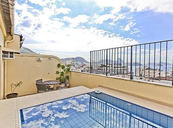 Das Penthouse mit 2 Schlafzimmern befindet sich in perfekter Lage, nur eine Gehminute entfernt vom berühmten Copacabanastrand