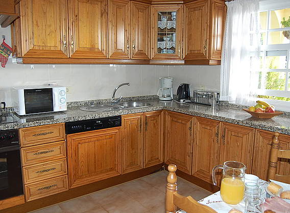 La casa tiene la típica contrucción interior canaria. En la primera planta hay una cocina independiente totalmente equipada con horno, nevera-congelador y lavavajillas, 2 baños (uno con ducha y otro con bañera), un comedor independiente, un salón con chimenea y tv sat, dos dormitorios (uno con cama de matrimonio y otro con dos camas individuales).