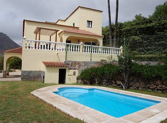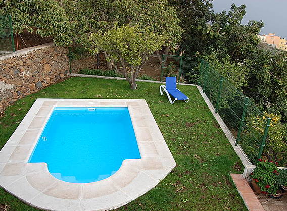 Si los interiores son bonitos y espaciosos, su exteriores son frondosos, verdes y con vistas espectaculares a la costa de Las Américas y Los Cristianos. Ideal para relajarse con el azul del mar y los barcos navegando tranquilamente. En los alrededores de la casa hay una barbacoa y espléndidas mesas de terraza para poder disfrutar de un buen desayuno, almuerzo o cena. El jardín de la villa cuenta con una piscina de 5,7 x 3 metros. La villa se encuentra rodeada de numerosos árboles frutales como aguacateros y naranjeros.