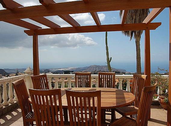 La Villa se distribuye en dos plantas. Destaca la entrada de la casa por su frondosa vegetación y una preciosa terraza de 48 m con una pérgola de madera que invita a disfrutar de las maravillosas vistas que abarcan desde el pueblo de Arona hasta la costa de Los Cristianos y Las Américas.